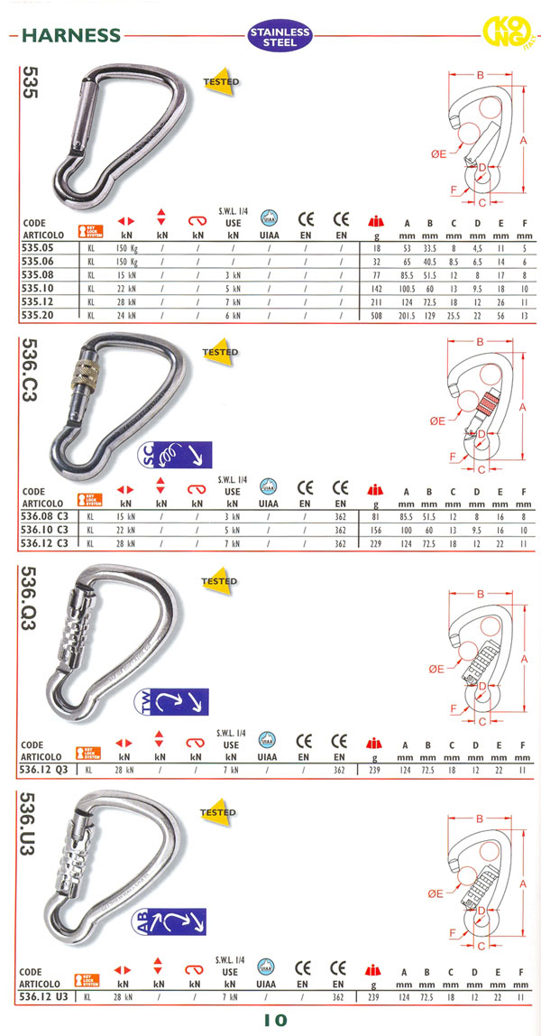di alta sicurezza utilizzati, oltre che in alpinismo, soccorso,